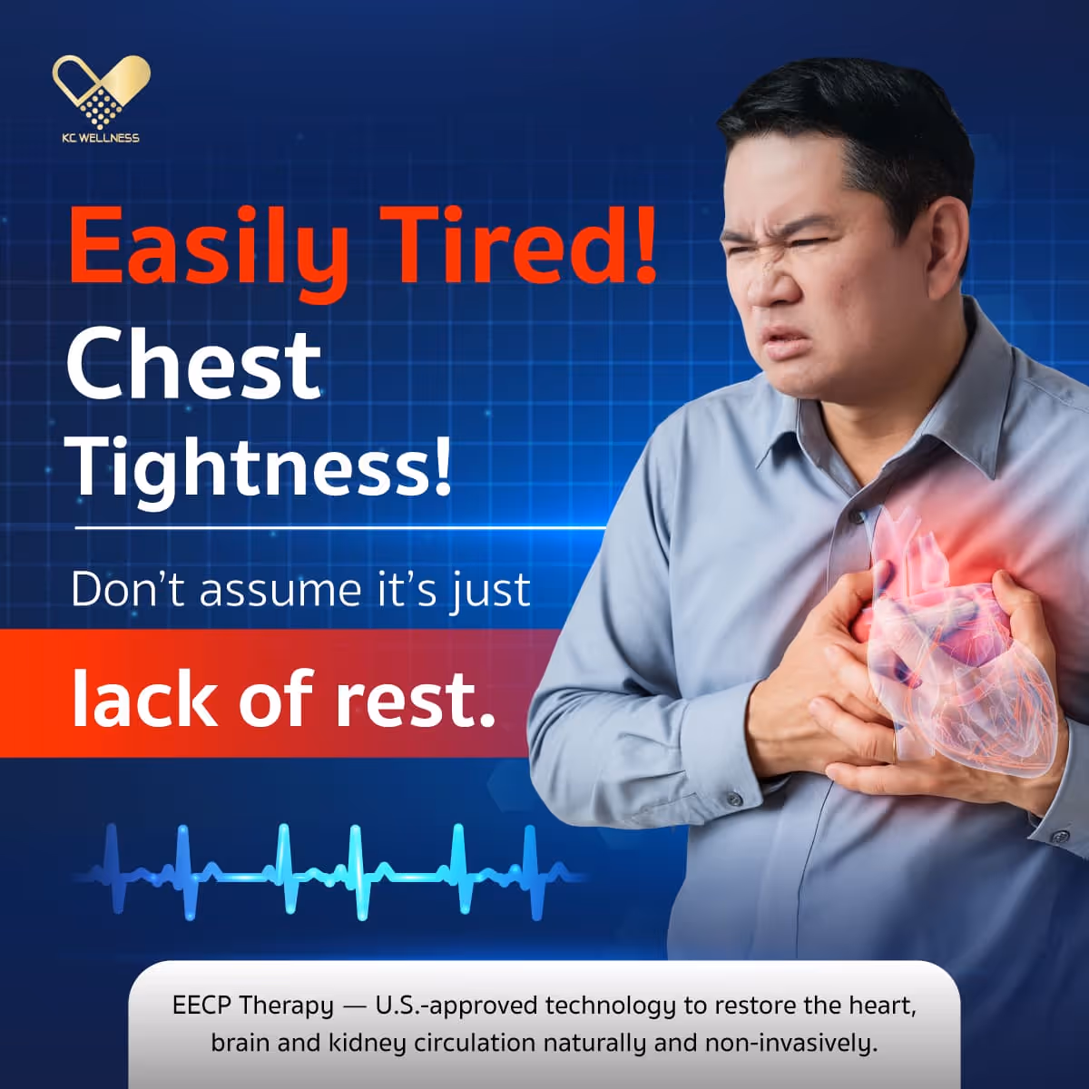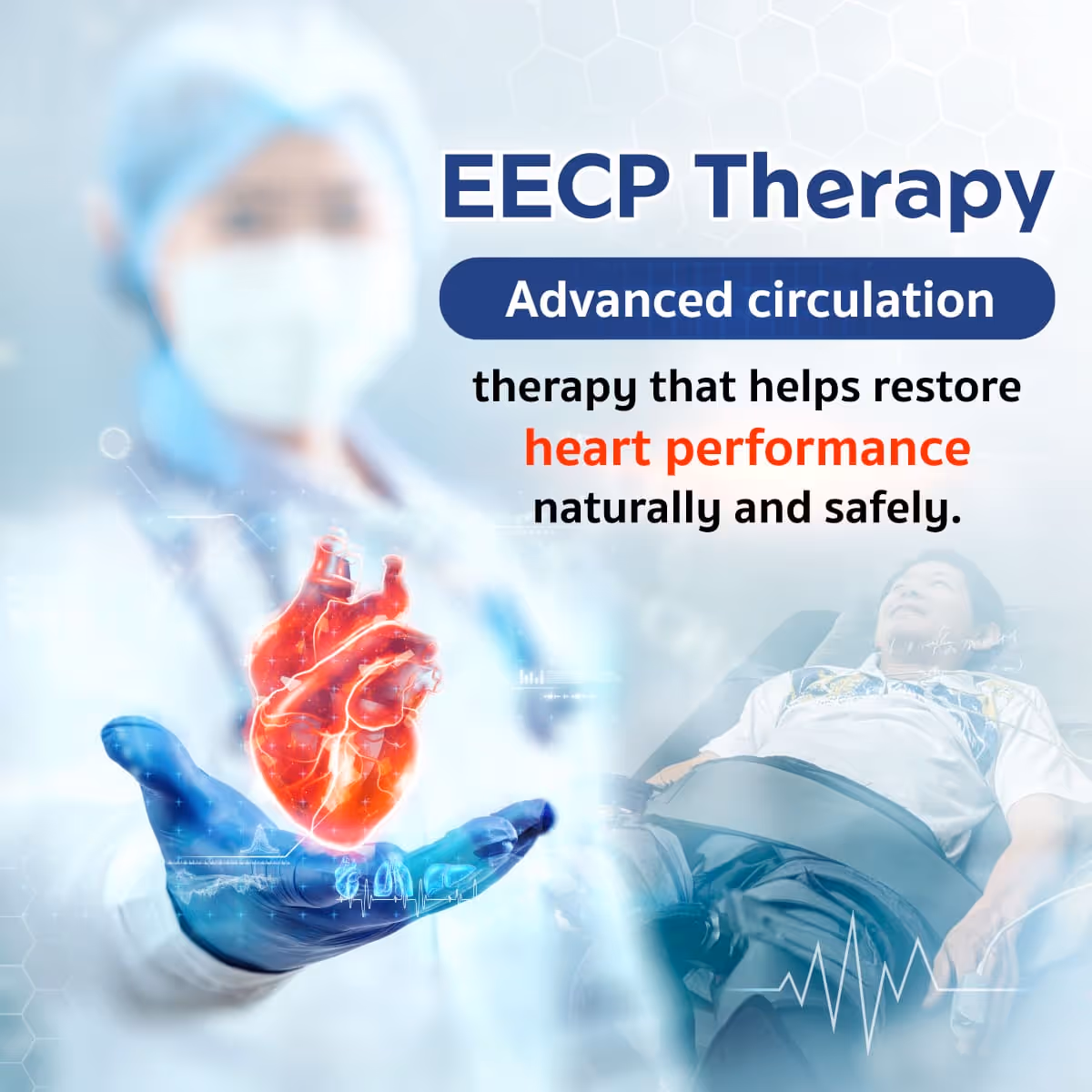 EECP Therapy restores vital blood flow and boosts heart strength—all without surgery. It's a continuous, effective solution for ongoing heart recovery, even after procedures like bypass or balloon angioplasty.